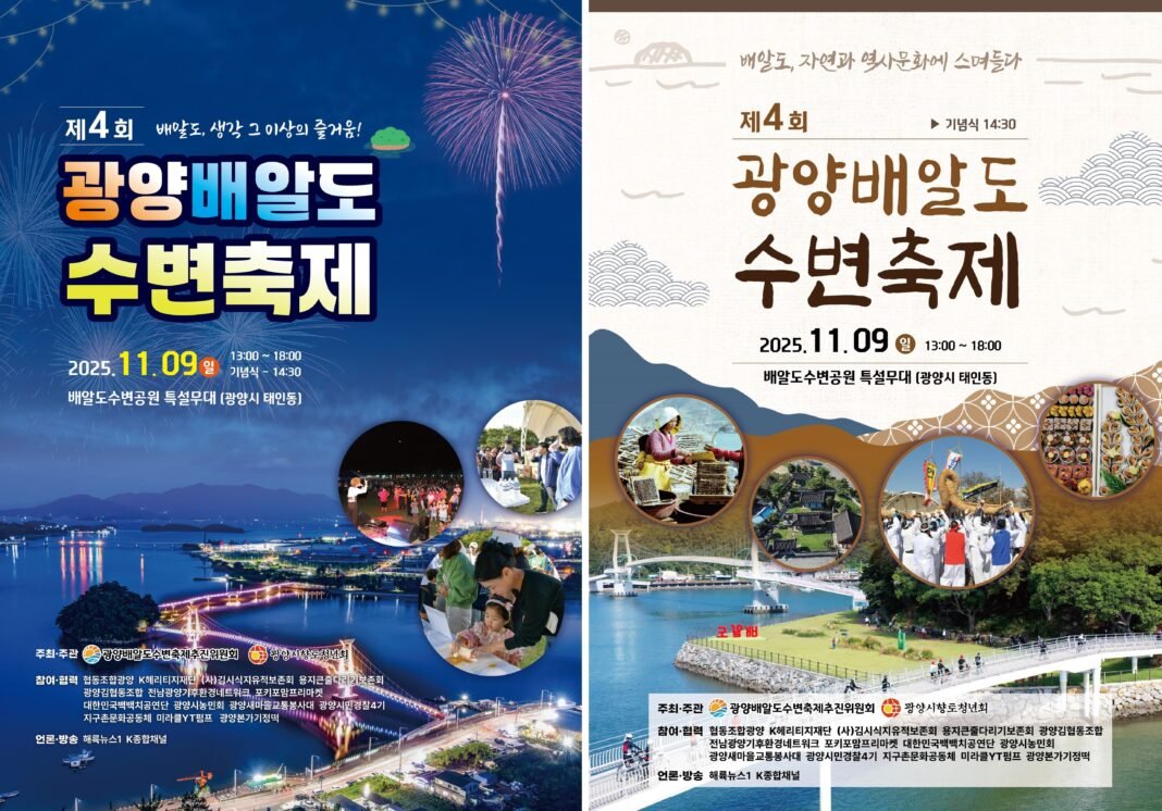 제4회 ‘광양 배알도 수변축제’가 오는 11월 9일 오후 1시부터 6시까지 배알도 수변공원 특설무대에서 열린다.