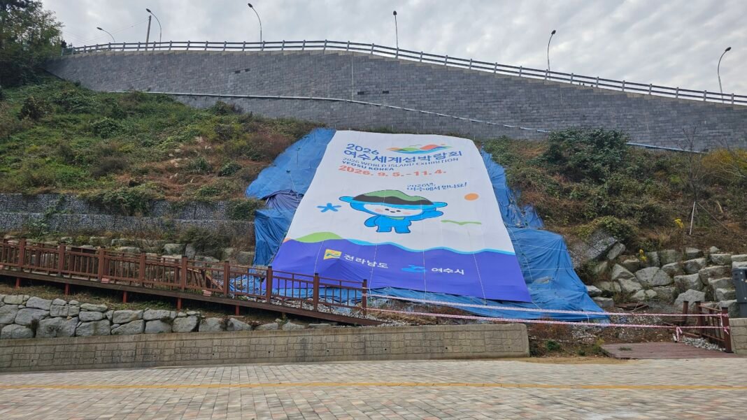 이순신대교 홍보관을 내려와 역사공원으로 가는 산책로가 막혔다. 옹벽이 무너진 것이다. 오랜 시간이 지난 듯하지만, 그 아찔한 현장을 ‘2026 여수세계섬박람회’를 홍보하는 대형 플래카드가 가리고 있다. 기억하려는 길에, 기억을 덮어두려는 장면이 겹쳐져 돌아서는 발걸음이 무거웠다.