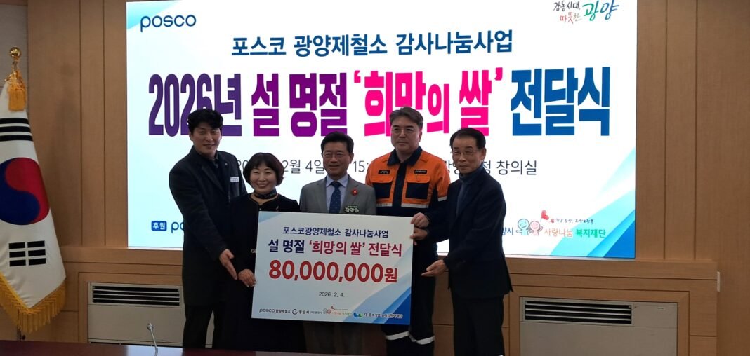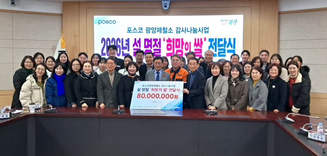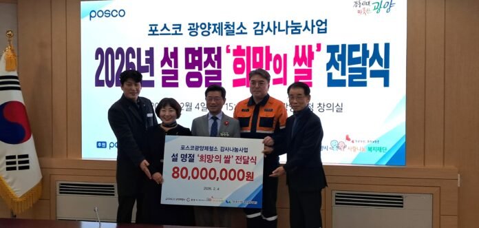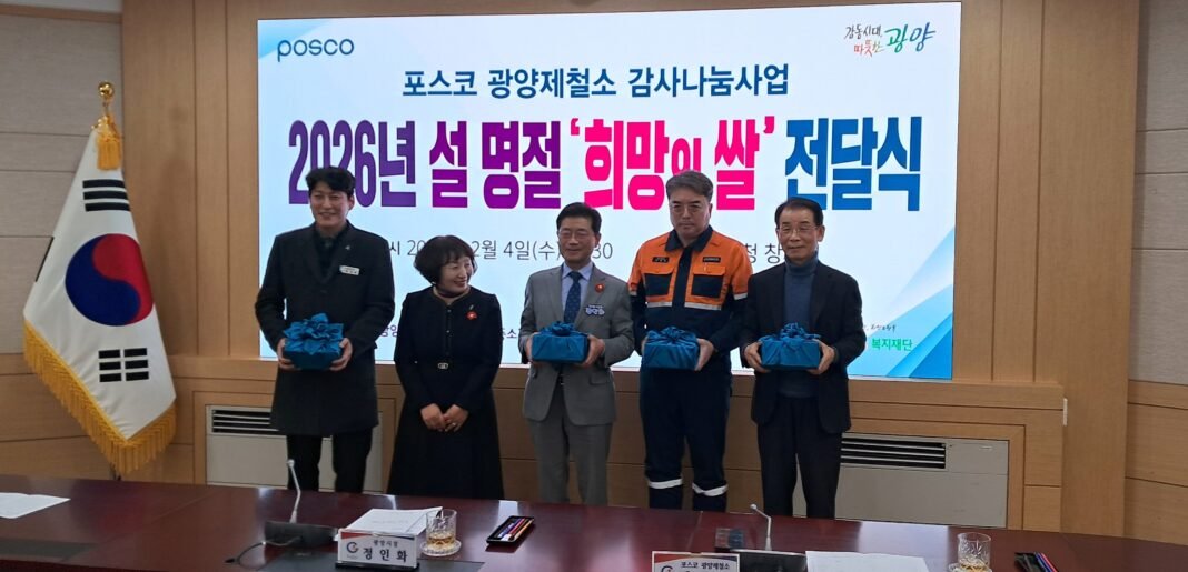 포스코 광양제철소(소장 이동렬)가 지난 4일 광양시청 창의실에서 올 설 명절을 맞아 지역 이웃을 위한 ‘희망의 쌀’ 전달식을 개최했다.