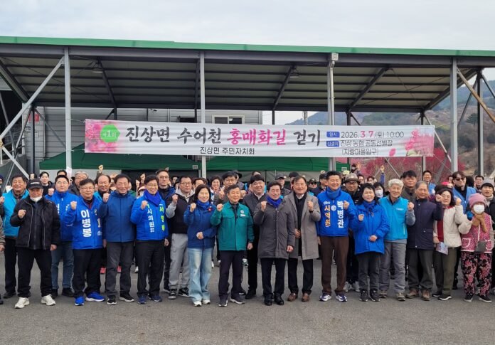 광양시 진상면 주민자치회(회장 서갑종)는 지난 7일 토요일, 꽃샘추위 속에서도 200여 명의 면민과 시민들이 참석한 가운데 ‘제1회 진상면 수어천 홍매화길 걷기 행사’를 성공적으로 개최했다.