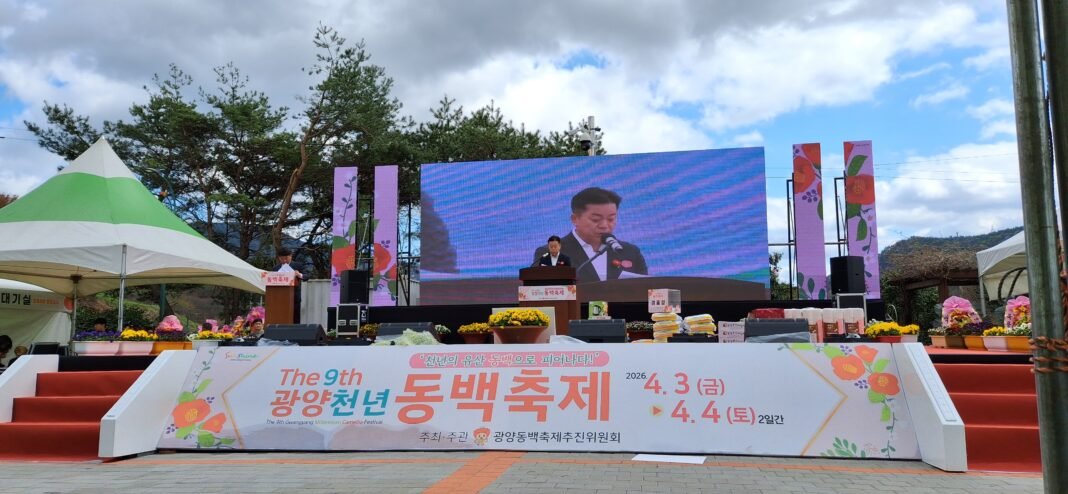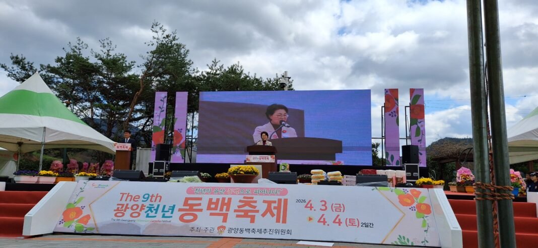 [공동취재=김대현·박분옥 기자] ‘제9회 광양천년동백축제’가 지난 4월 3일부터 4일까지 이틀간 옥룡면 옥룡사지 동백숲 일원에서 성황리에 열렸다. 올해로 9회를 맞은 이번 축제는 ‘천년의 유산 동백으로 피어나다’를 주제로, 공연·체험·전시·주민 참여 프로그램 등으로 구성됐다.